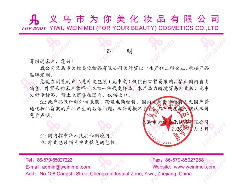 Yiwu Weinimei (For Your Beauty) Cosmetics Co.,Ltd 14yr.