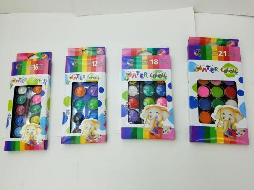 Twelve colors of watercolor, 16 colors of watercolor, 18 colors of watercolor, 21 colors of watercolor, 28 colors of watercolor