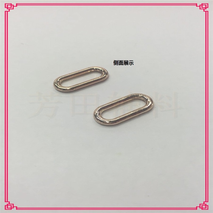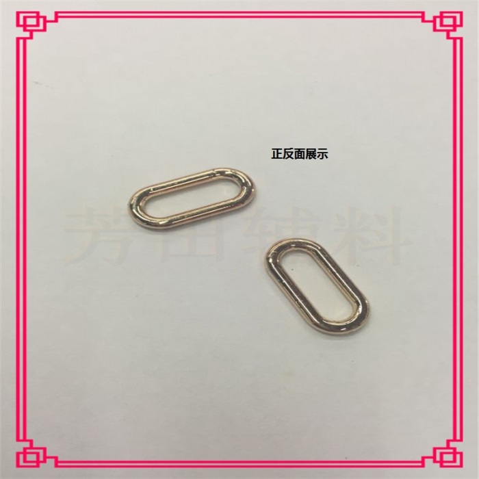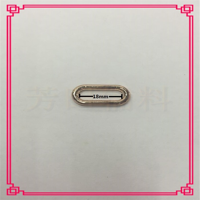 【Product Model】:Alloy inner diameter 18mm, Guangdong Jindan, oval-shaped buckle 【Product Size】:Internal diameter 18mm 【Product Material】:Alloy 【Product Color】:Guangdong GoldOther colors can be customized. |