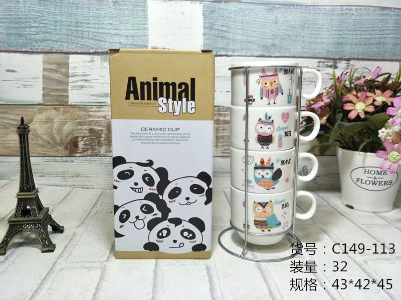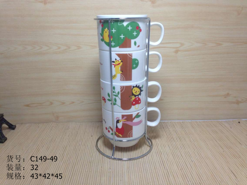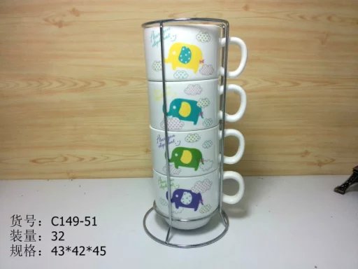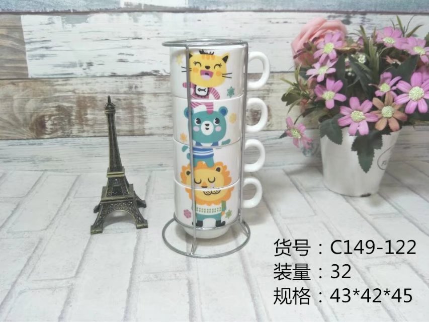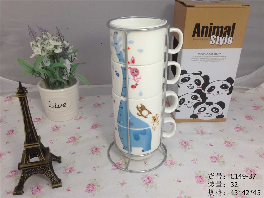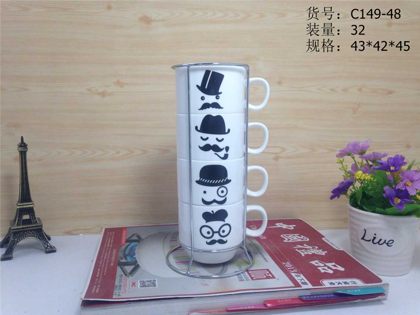 产品包装:四杯 铁架 彩盒包装