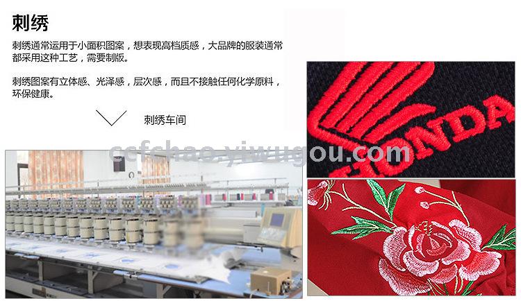Custom-made designs, company uniforms, printing of logos, patterns, and company emblems... etc. All require additional printing fees.