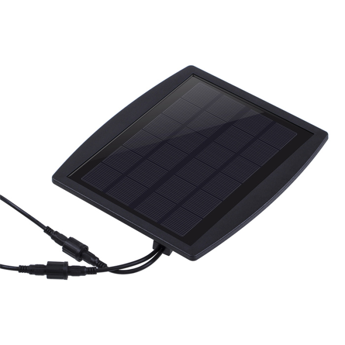 1.利用地插将太阳能板固定在阳光没有遮挡的地方,调整太阳能板,让阳光可以直射在上面。
