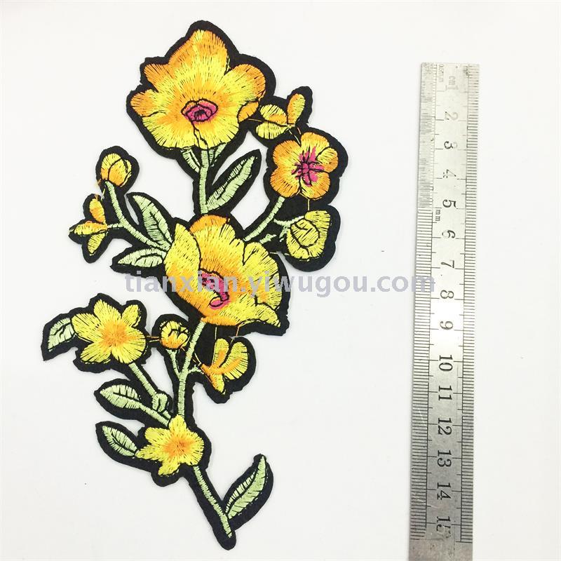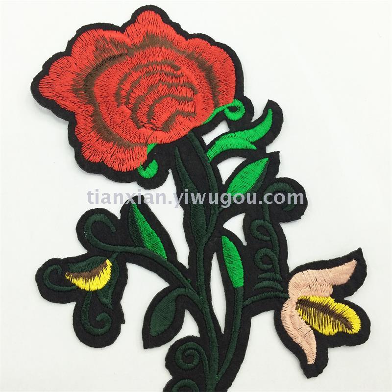 Material: Black felt base, artificial silk embroidery thread, with adhesive backing.