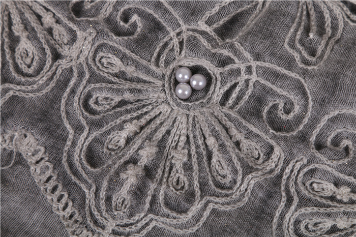 Product Name: Light Grey Patterned Beaded Decorative Scarf/Poncho (Two-in-One) Direct from Manufacturer