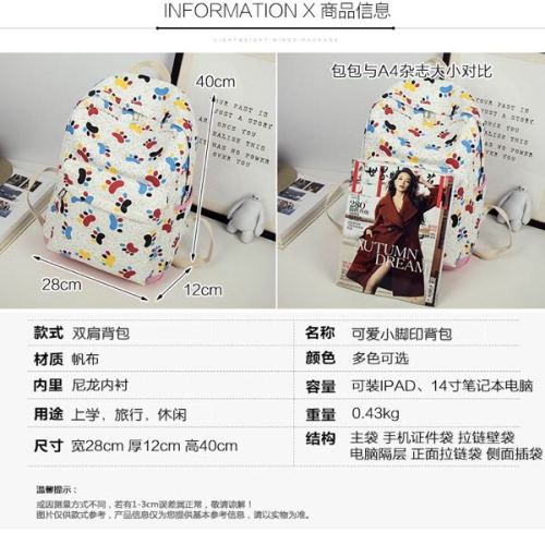 Canvas print leisure backpack travel bag shoulder bag