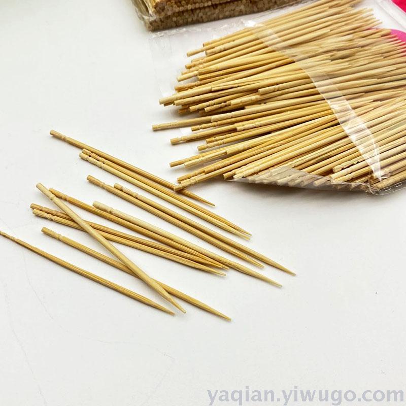 This toothpick has two types: single-point and double-point. The packaging and packing quantity are the same. Each small piece is equipped with a hanging hole, which is convenient for sale and display. There is a barcode on the back, which can be scanned directly at the supermarket for pricing.