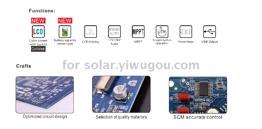 The solar controller uses a high-speed CPU microprocessor and high-precision A/D analog-to-digital converter, making it a microcomputer data acquisition and monitoring control system. It can quickly and real-time collect the current working state of the photovoltaic system, obtain the working information of the PV station at any time, and can also accumulate detailed historical data of the PV station, providing accurate and sufficient evidence for evaluating the rationality of the PV system design and testing the reliability of system component quality. In addition, the solar controller also has a serial communication data transmission function, which can centralize the management of multiple photovoltaic system sub-stations and control them from a distance.