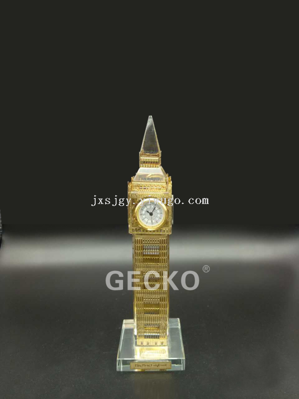 英国伦敦大本钟,又称大笨钟,即威斯敏斯特宫。钟楼高79m,钟楼四面的圆形钟盘,直径为6.7m,是伦敦的传统地标:通过水晶镶金工艺并配合金属件设计制作。
