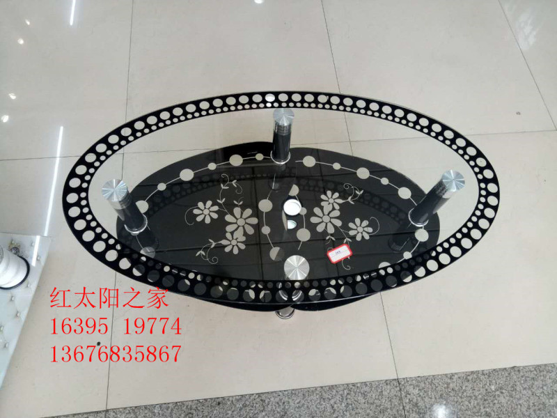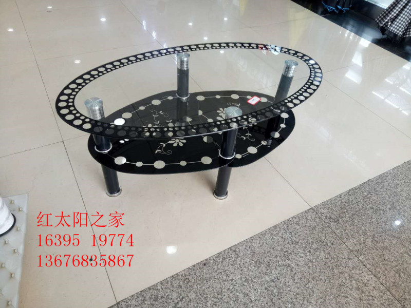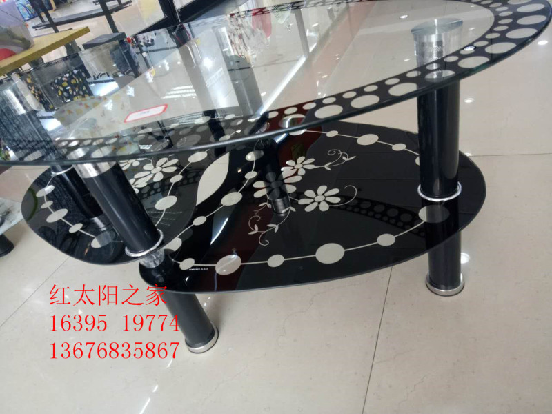 f5-19774 indoor double-layer glass oval tea table household glass table