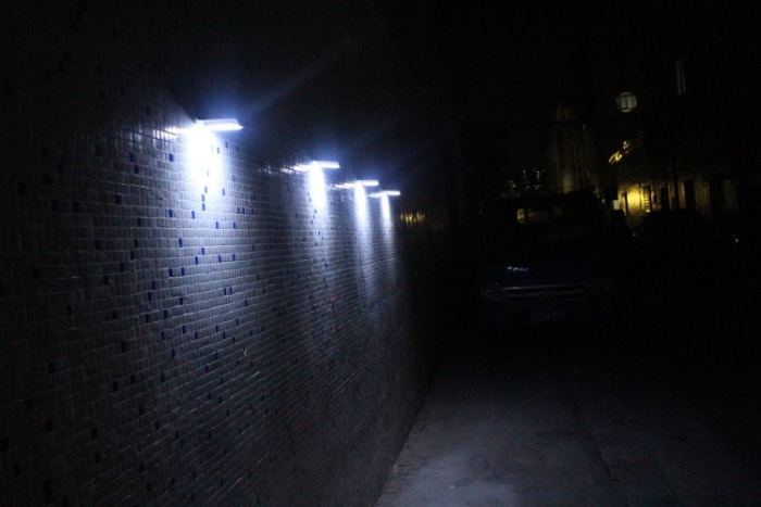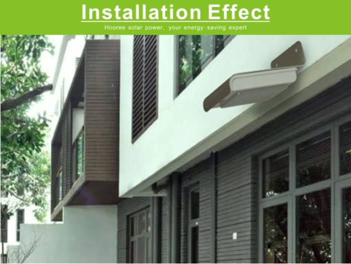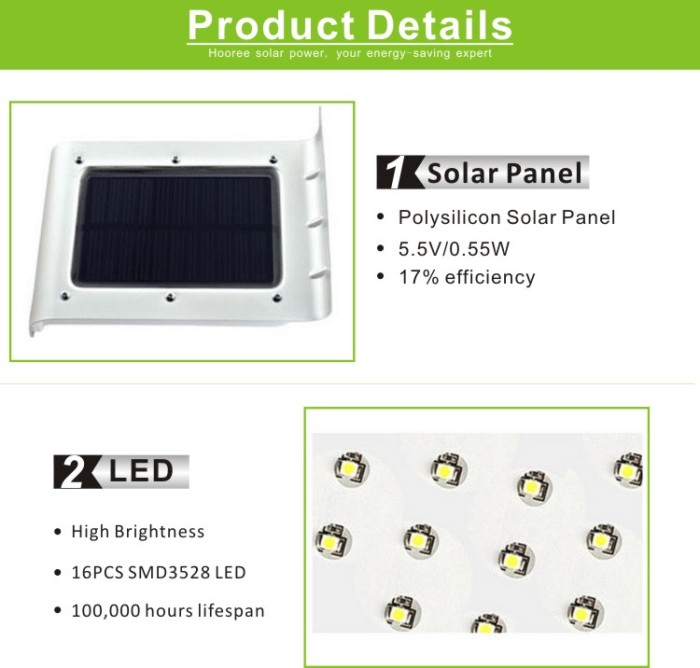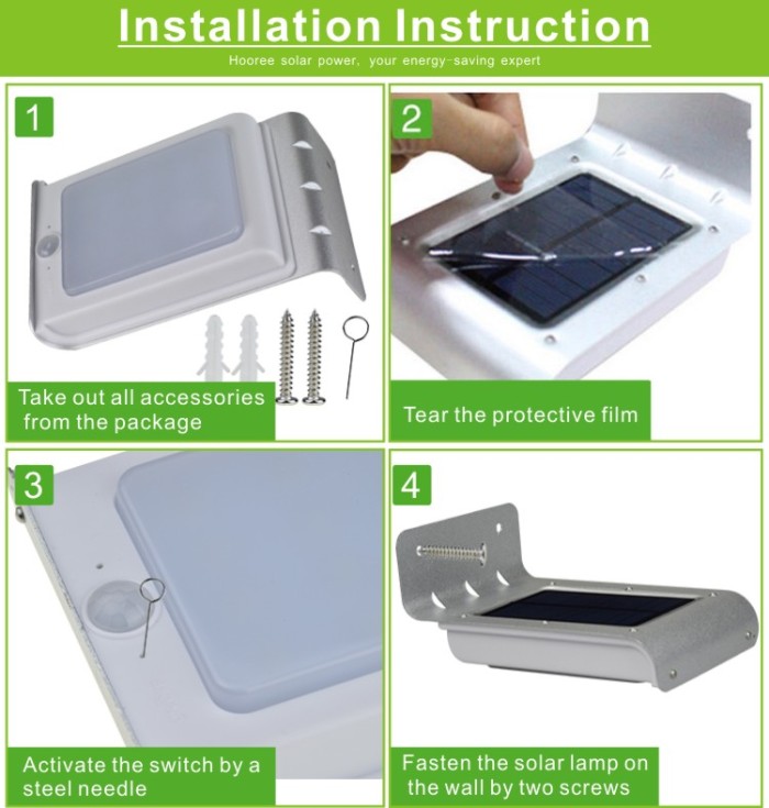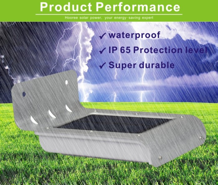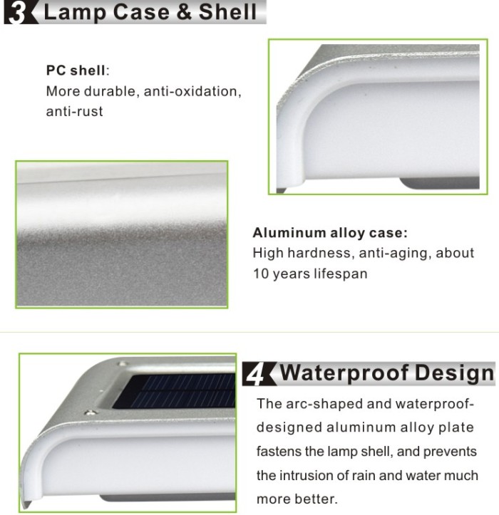 6. Light control and dim light function: Auto identify day and night, light turns on at night or in darkness, and turns off in daytime or bright area. When people approaches, the light will be more brighter, after 30 seconds will keep dim light to save power.