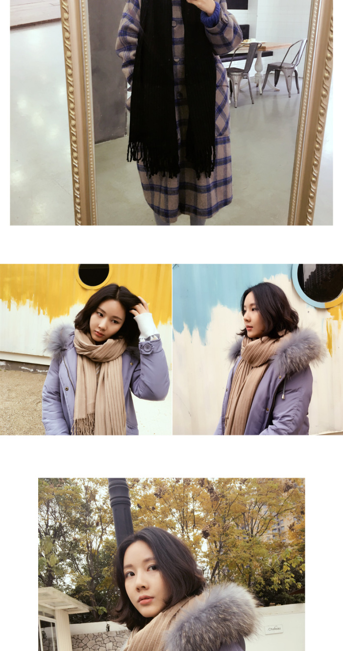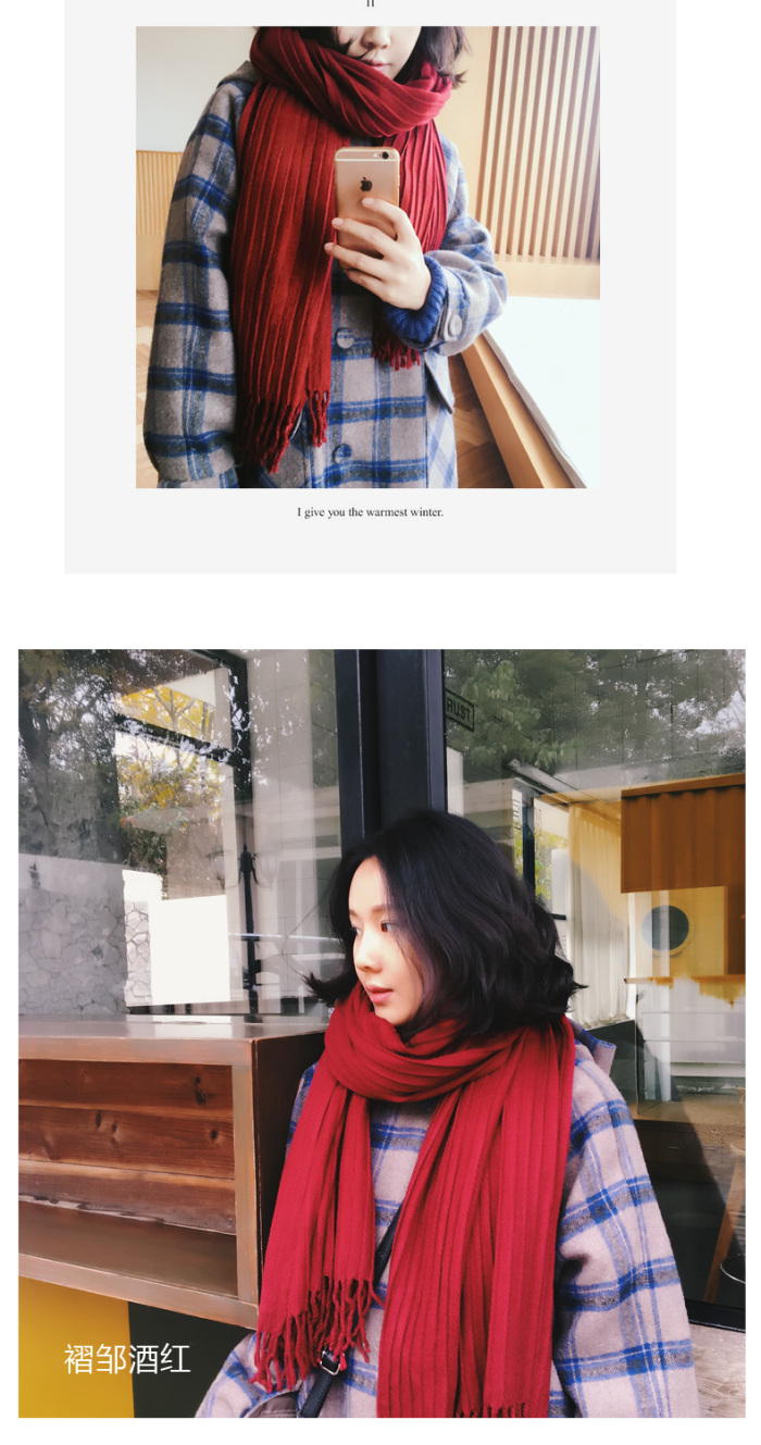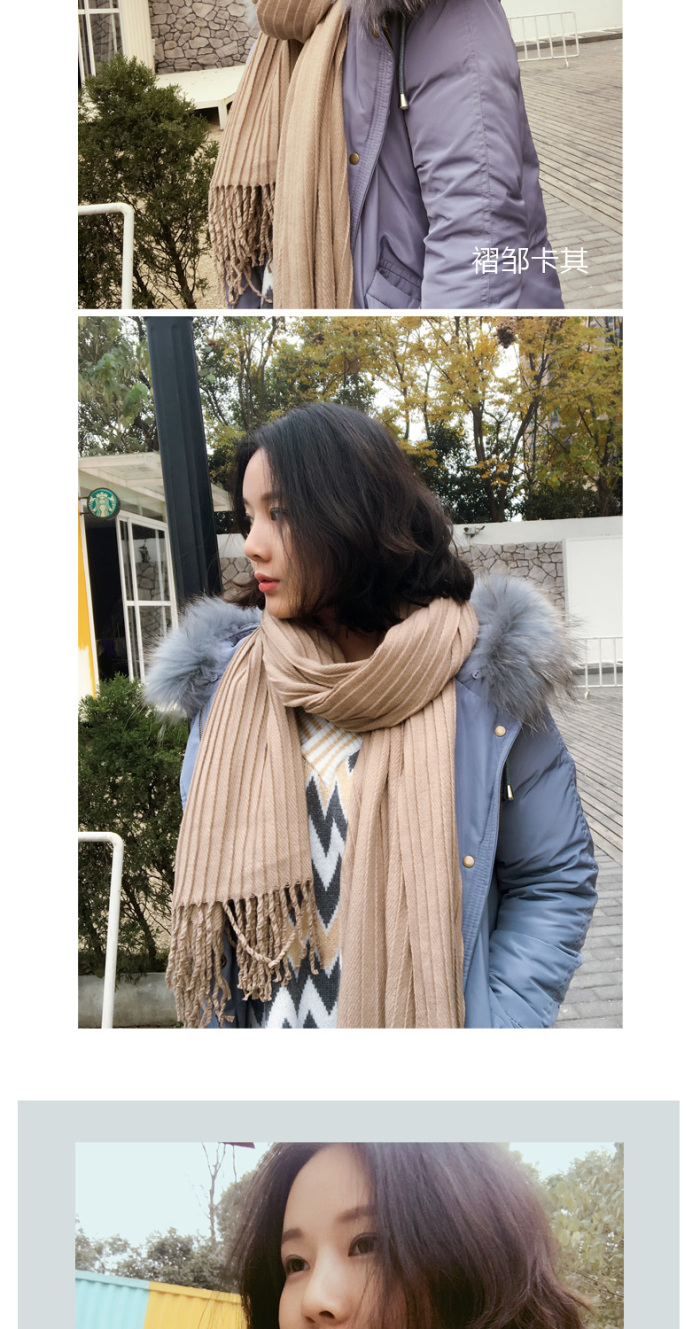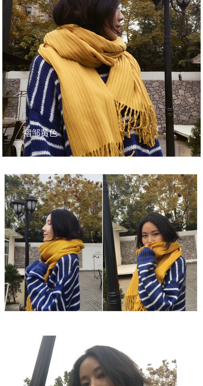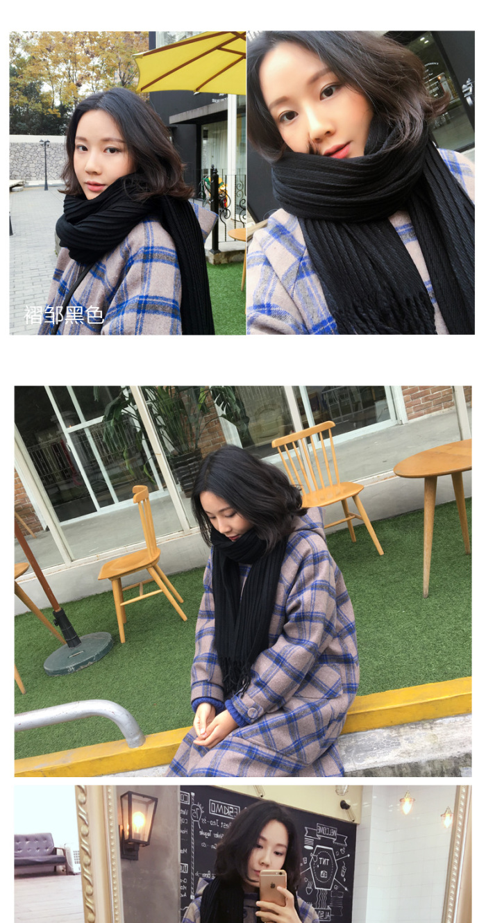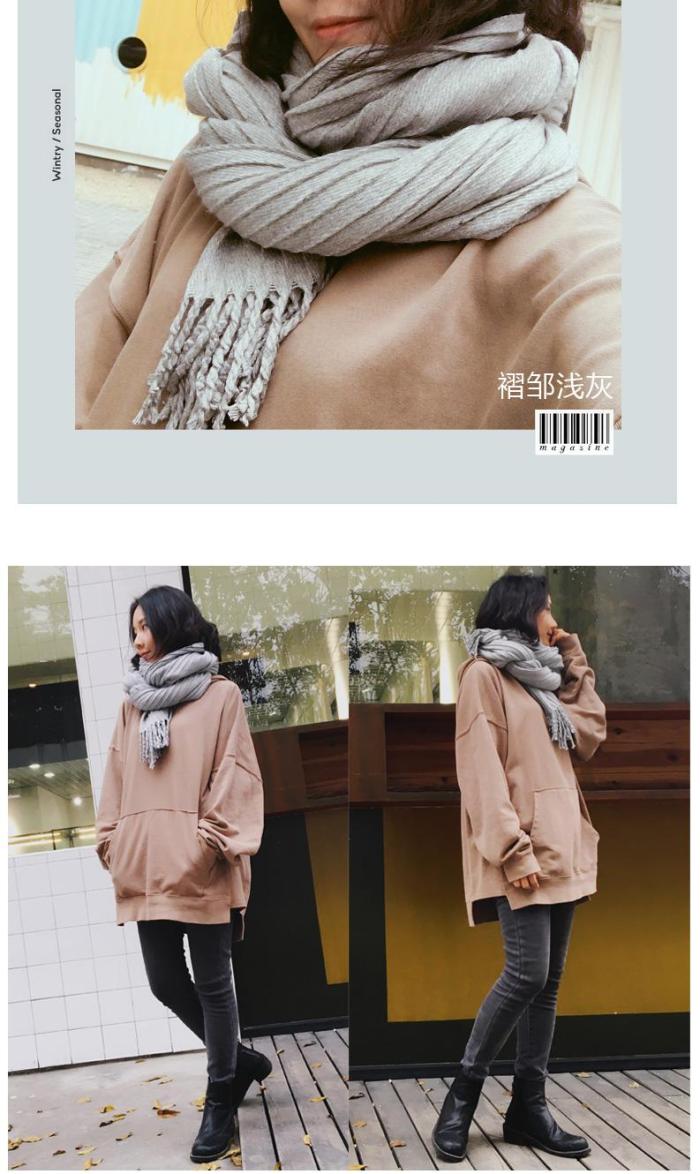 Solid Color Cashmere-like Pleated Zou Scarf Women's Winter Long Tassel Shawl Dual-Use Korean Students Thick Warm Winter