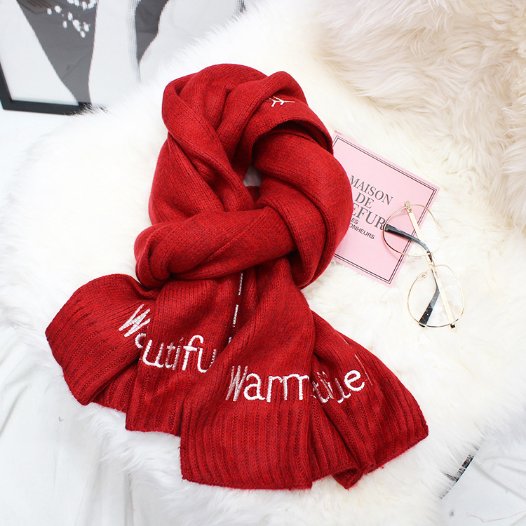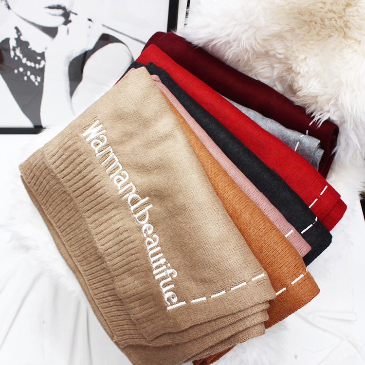The new version of the han edition of the 100 lap embroidered warm shawl knitted imitation cashmere long scarf
