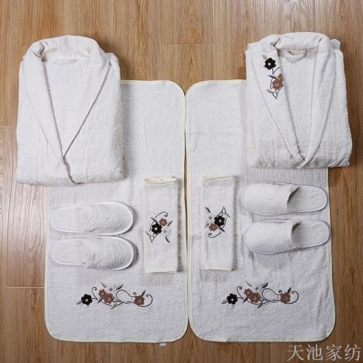 Winter Warm non-fading pure cotton towel material three-dimensional embroidery Hotel average size bathrobe set spot