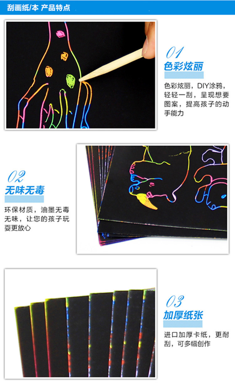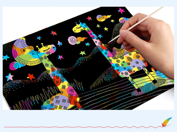 Scrap-art paper is a novel and unique painting material that combines the characteristics of various painting methods. It makes the complex process simple and safe. Scrap-art paper has overturned the traditional way of painting with a brush on paper. It combines the characteristics of woodblock printing and is designed to create a scratching effect with a bamboo brush on the paper. The safety has been greatly improved, making it suitable for students of all ages. Teachers can use it confidently, and students can also imagine unlimitedly, which greatly promotes the teaching atmosphere and improves the teaching results.