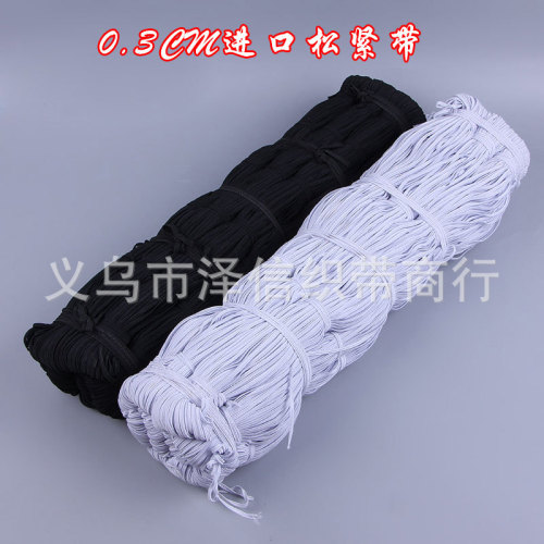Width: 0.3CM imported elastic band, excellent quality! Available in black and white, a bundle is approximately 750 meters. Elastic bands have a contracting property, and the length may fluctuate slightly. Please consider the loss when calculating the quantity.