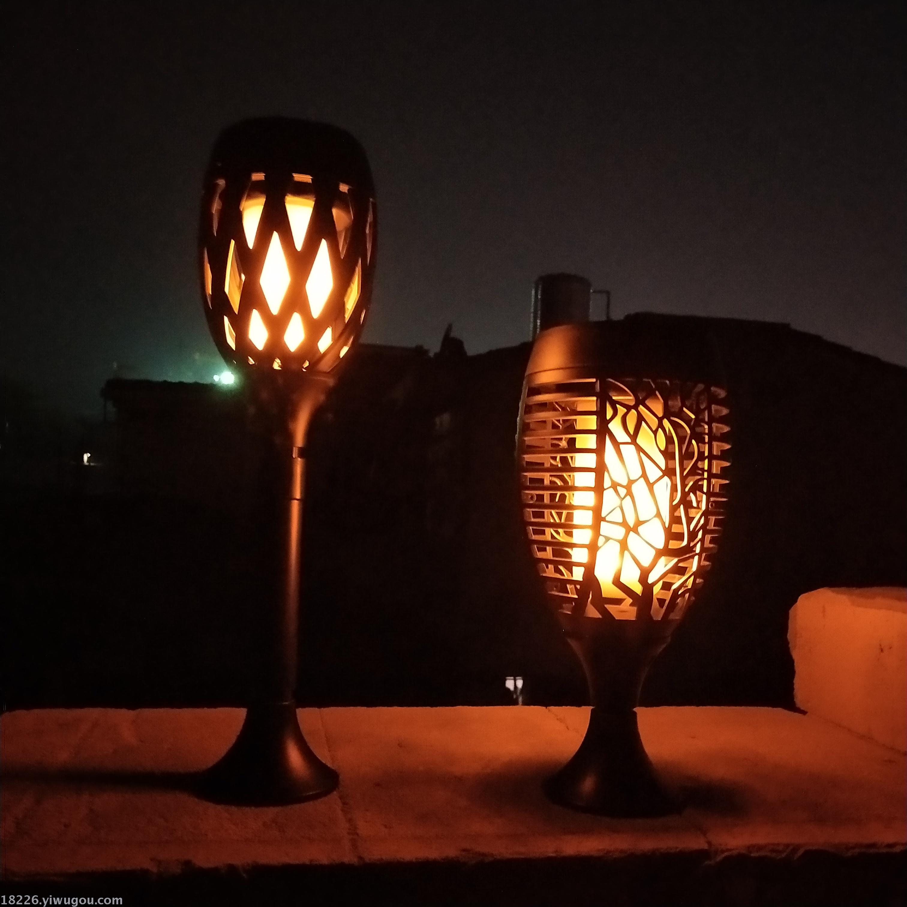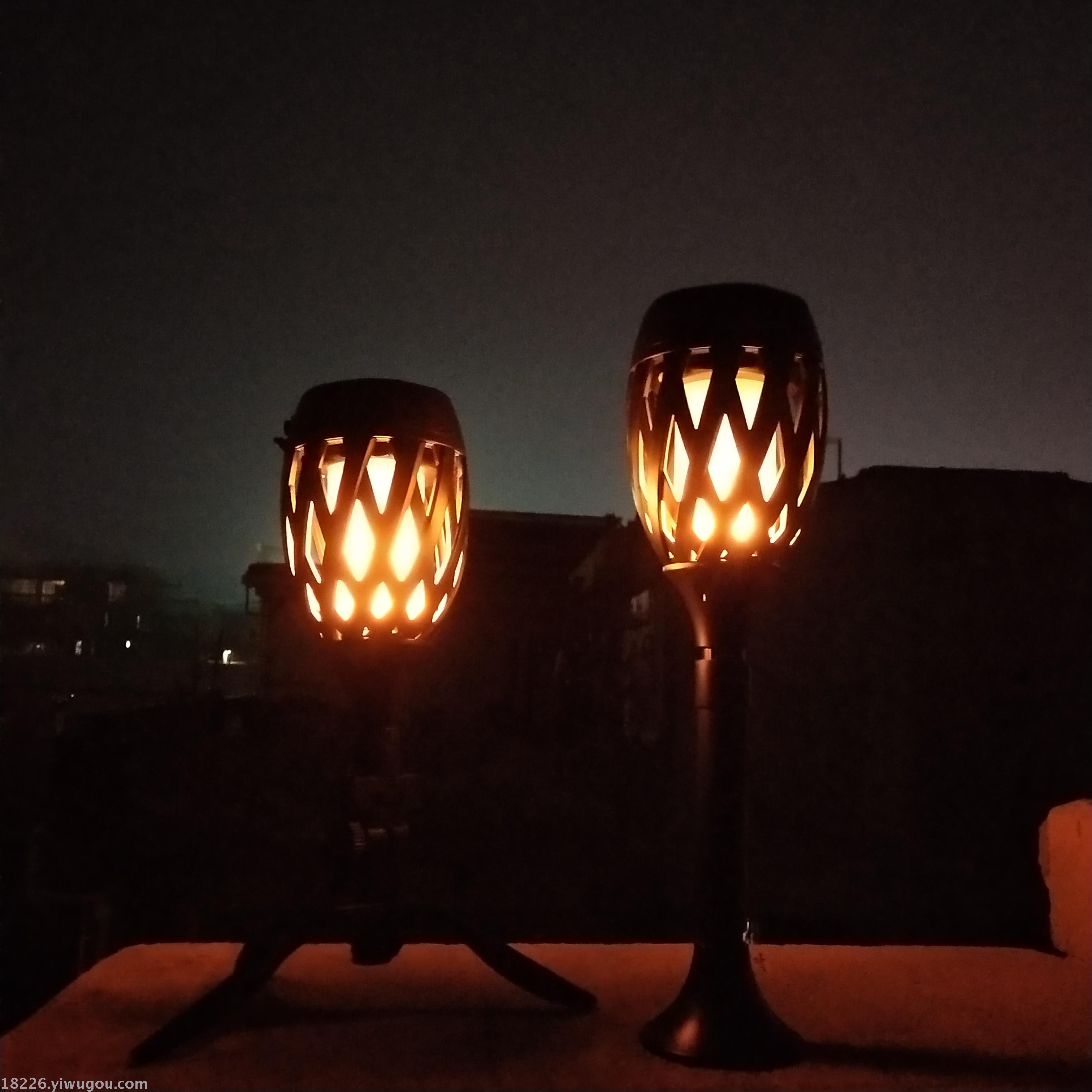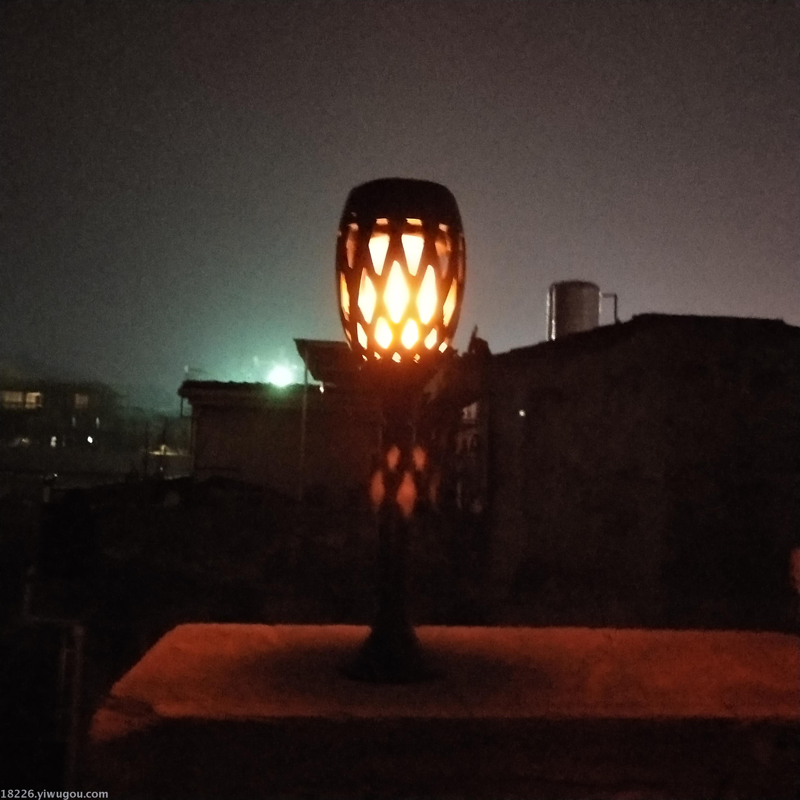 Function: On - Automatically lights up at nightfall" "Flashing flames" - Off