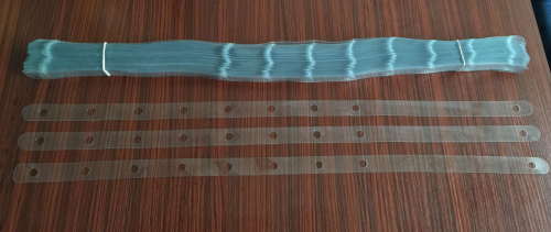 Clothing Link Bar, also known as Leather Tape. Material: Ultra-transparent soft PVC, Specification 595X2MM 70-strand thick. One piece contains 2400 bars, welcome to consult and place an order.