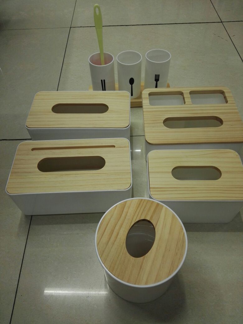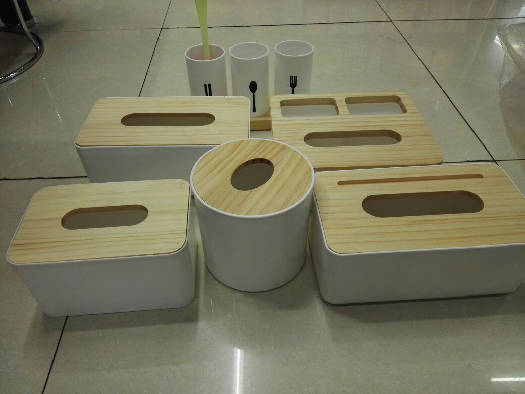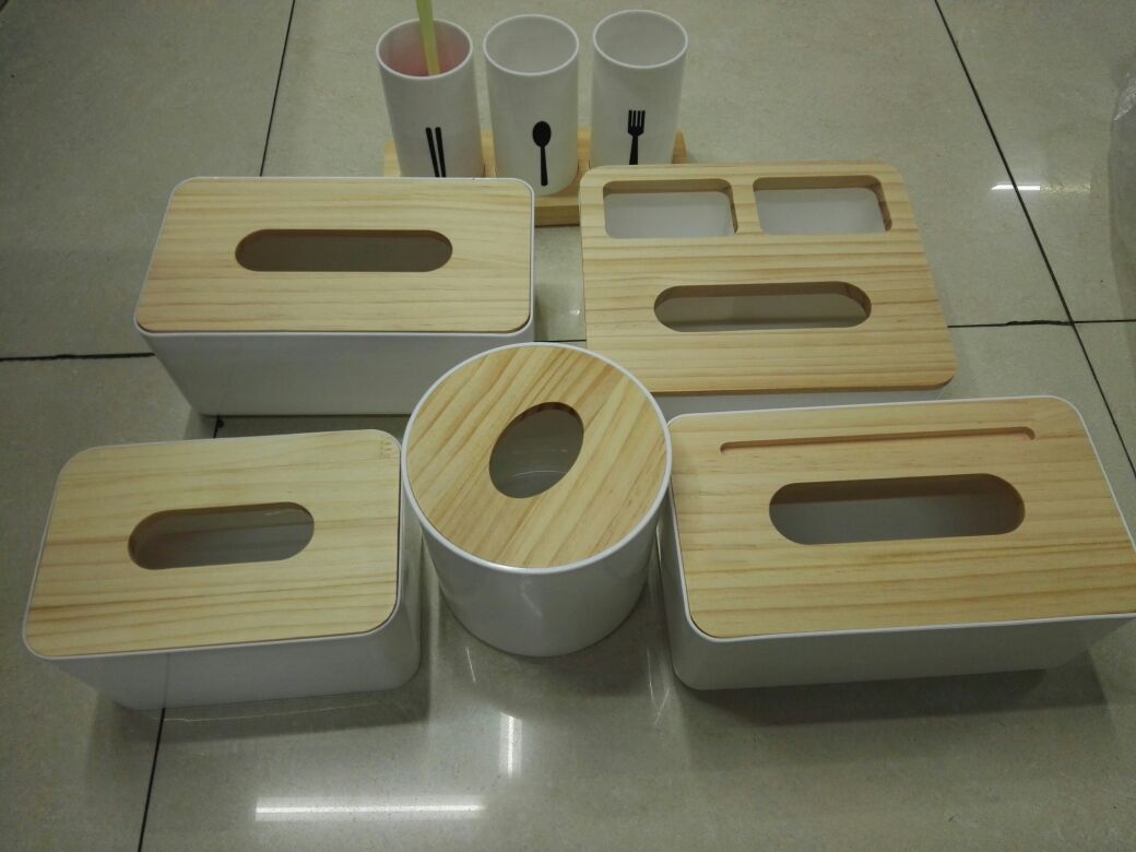 wooden lid tissue box storage box set 中文版