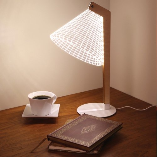 This 3D-designed lampshade deceives the eye, making it appear as if there is a shadow, when in reality, the lamp is two-dimensional.
