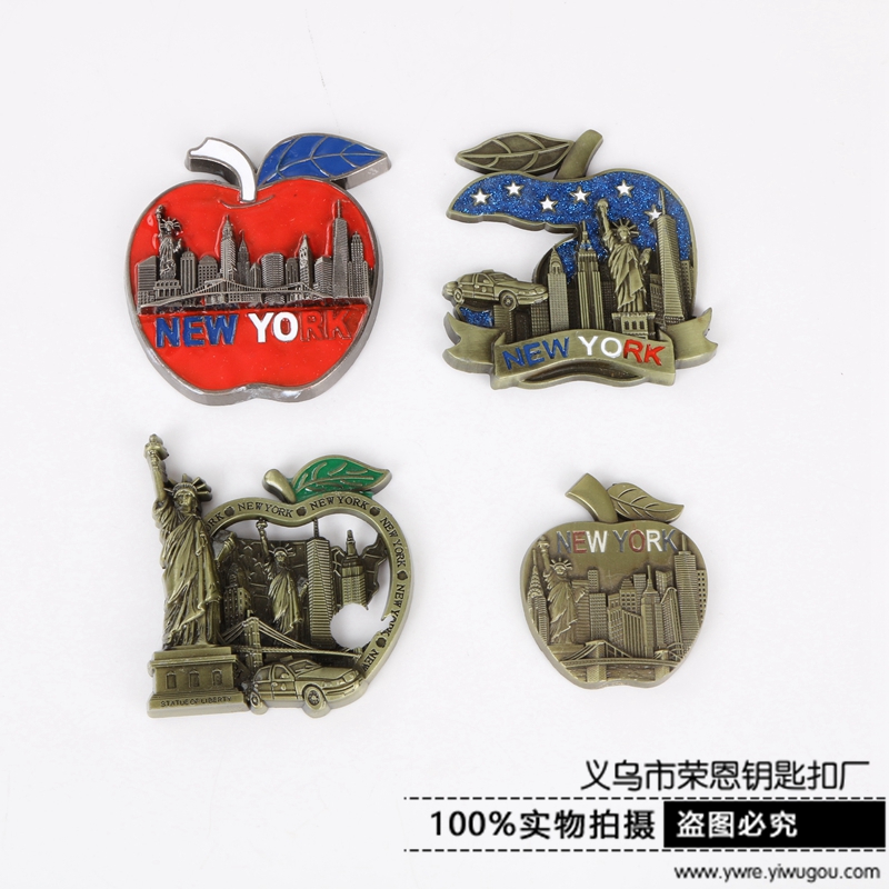 foreign trade us new york series apple metal alloy refridgerator magnets 中文版