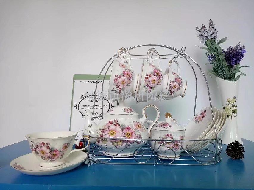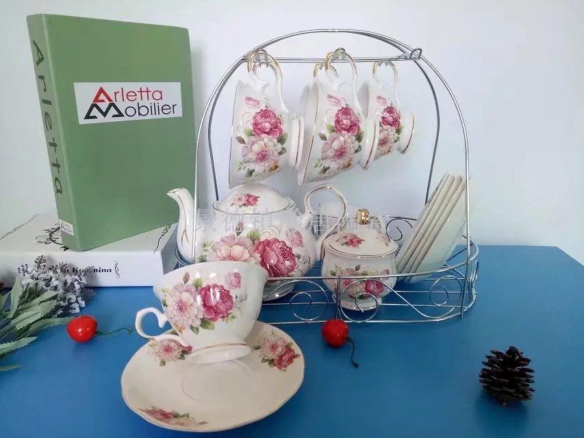 【名称】欧式15头铁架朵花咖啡具