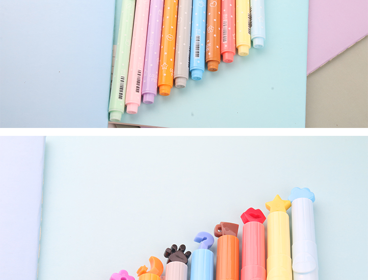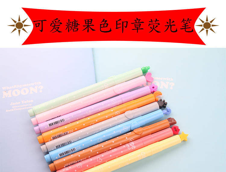 Creative fluorescent highlighters, colorful highlighters, cute candy color design stamp pens, and fresh and elegant stationery.