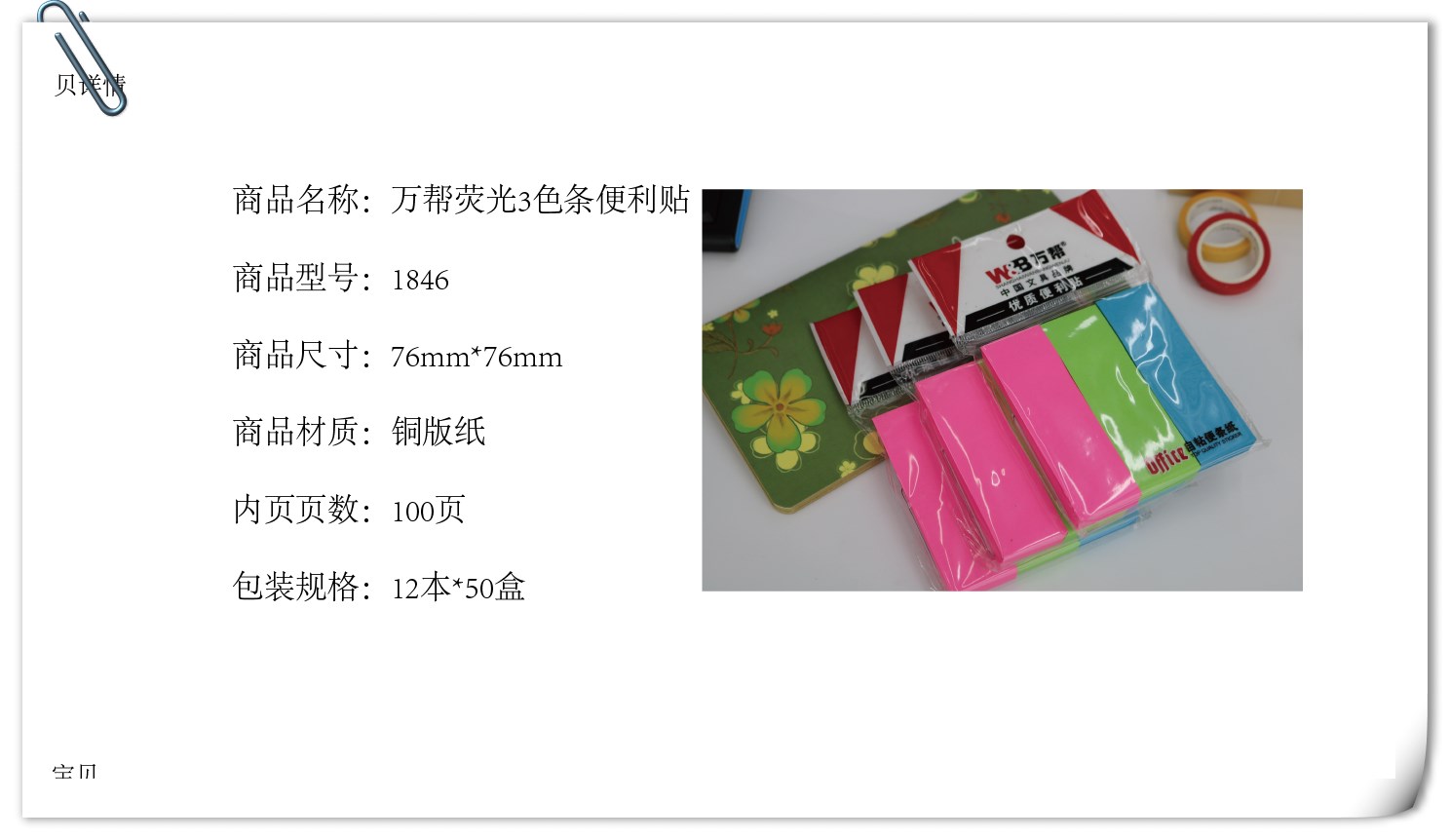 Ten pack post-it note gp-1846 fluorescent 4 color strip 100 pages N times