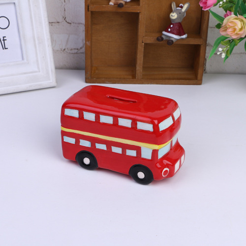 dunn red double layers bus money box cartoon children saving pot wholesale hand-painted export foreign trade tail order