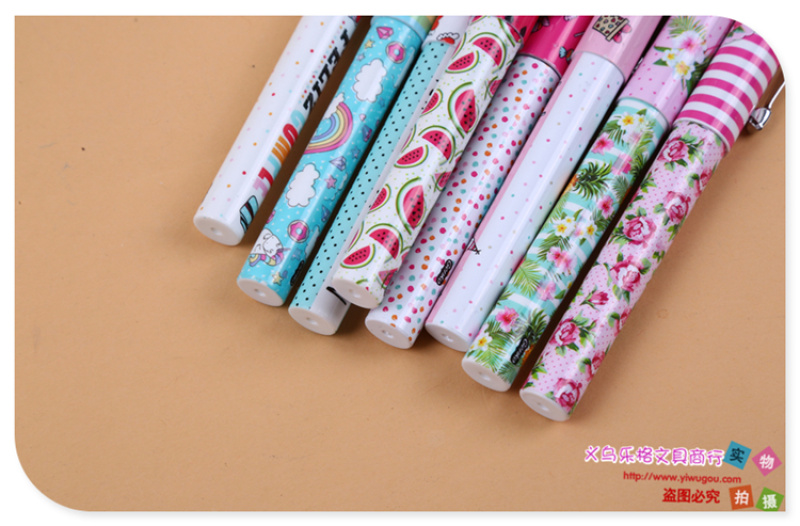 Product name: transparent plastic drum packaging cute little fresh style ballpoint pen with a variety of design patterns