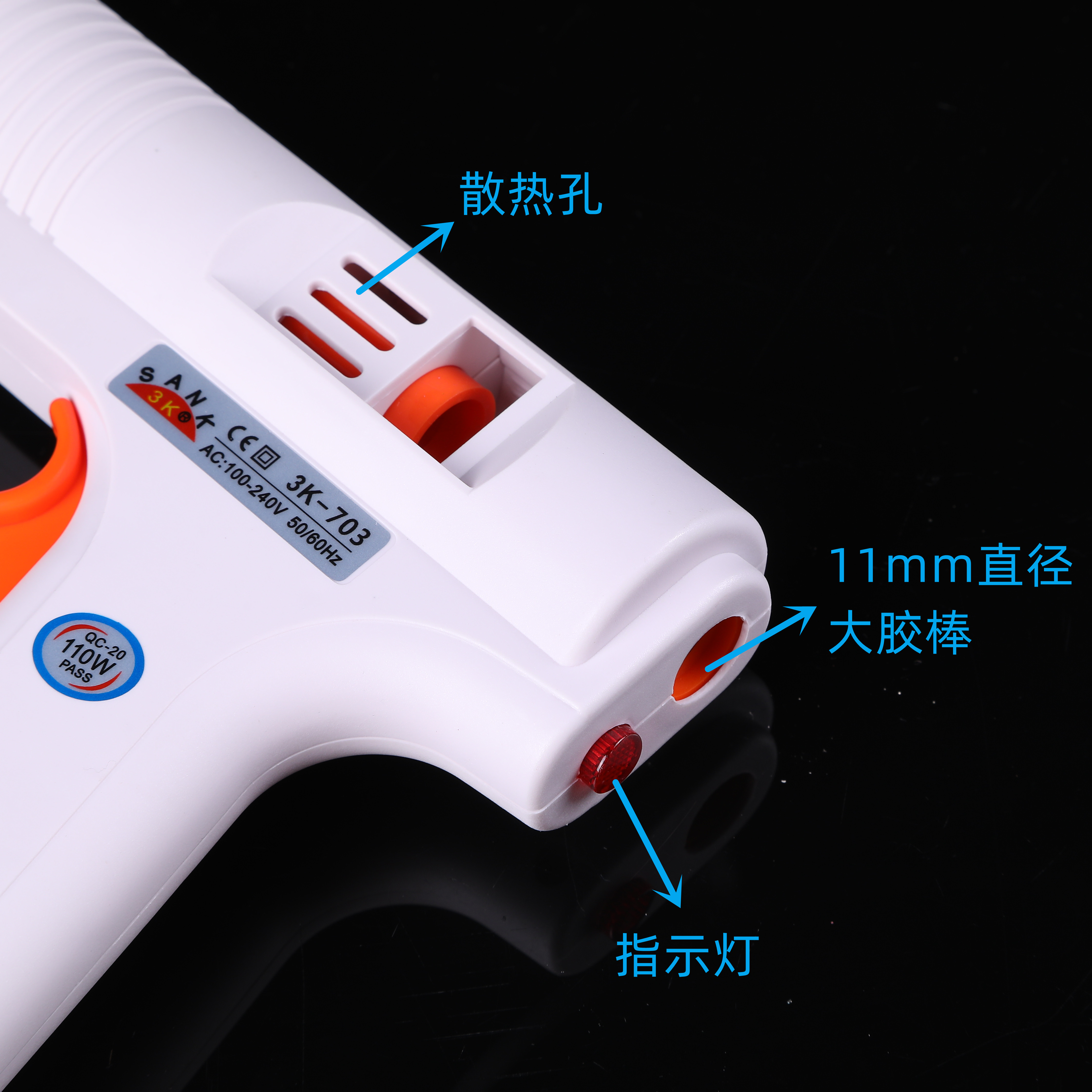 Our store's hot glue gunWith power switch and power indicator lightIt is possible to check whether the glue gun is powered on, as many glue guns heat up immediately after being plugged in, which is very unsafe.