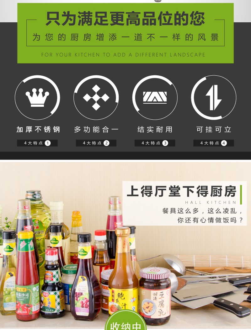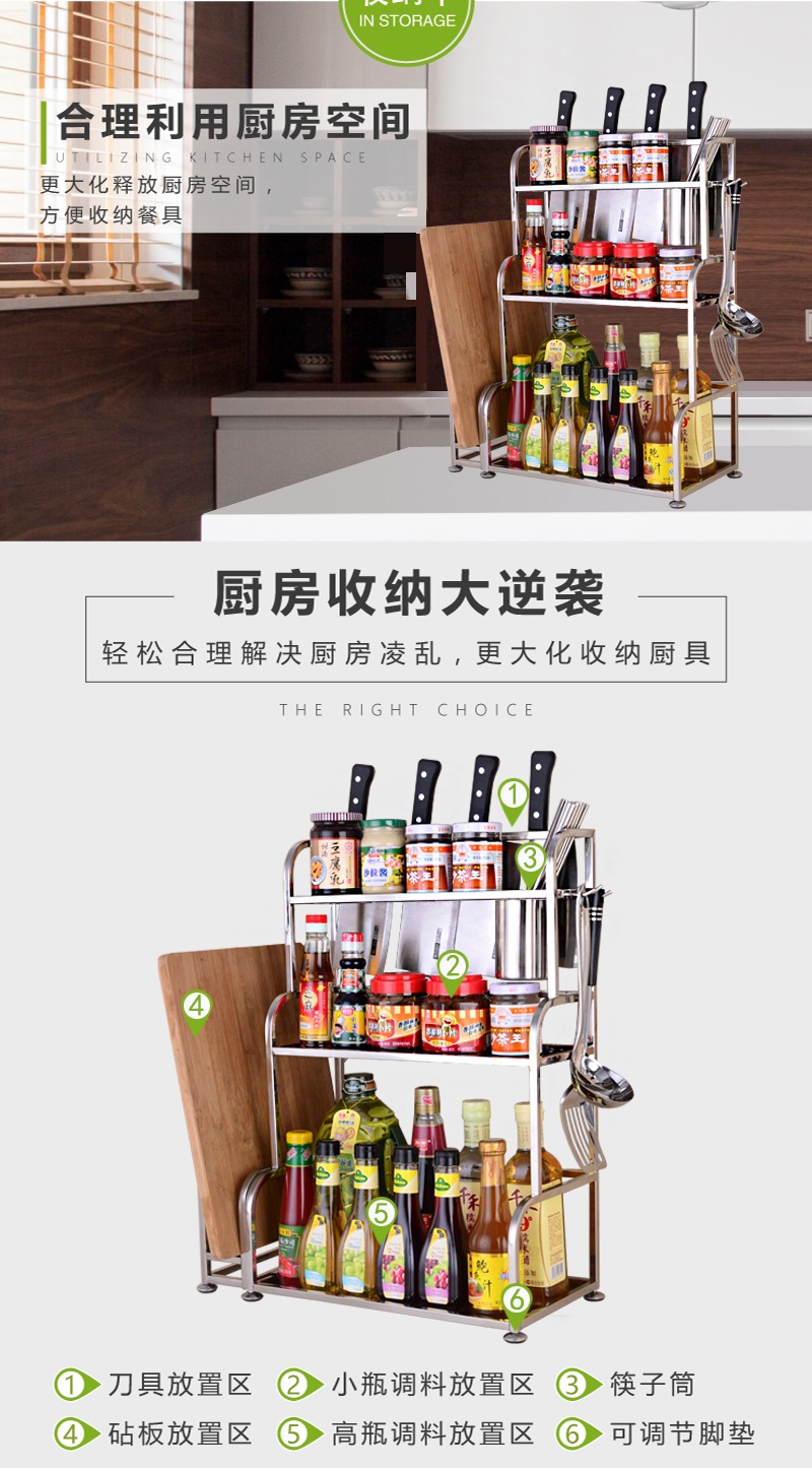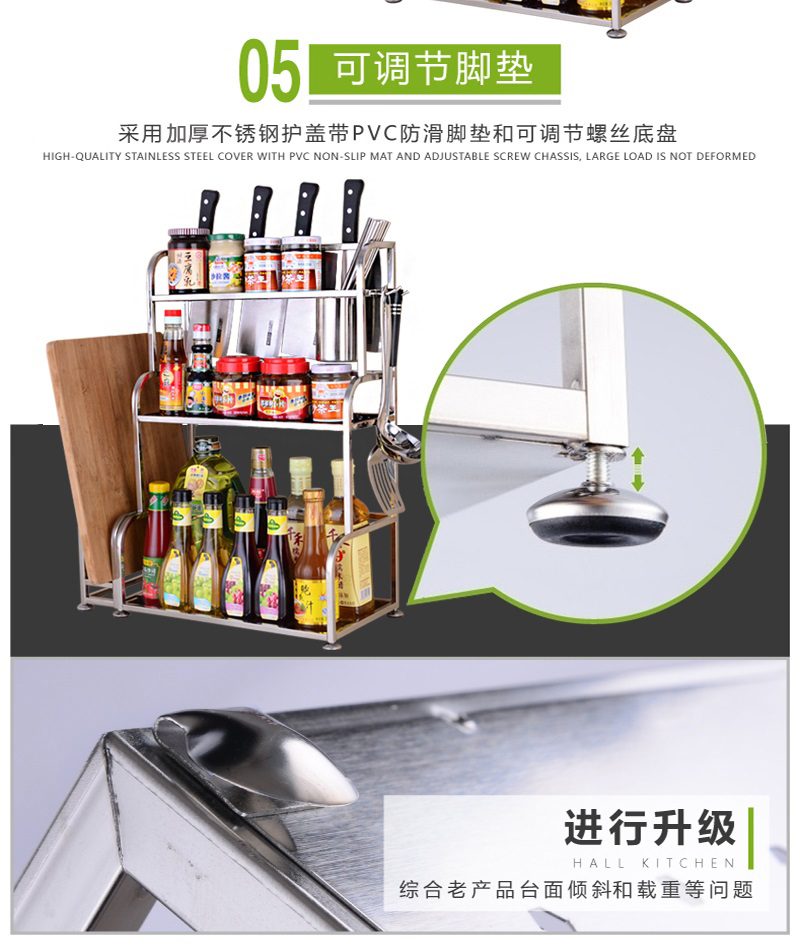 Home use 304 stainless steel seasoning rack kitchen countertop three-layer seasoning rack eco-friendly and safe, durable and anti-fall.