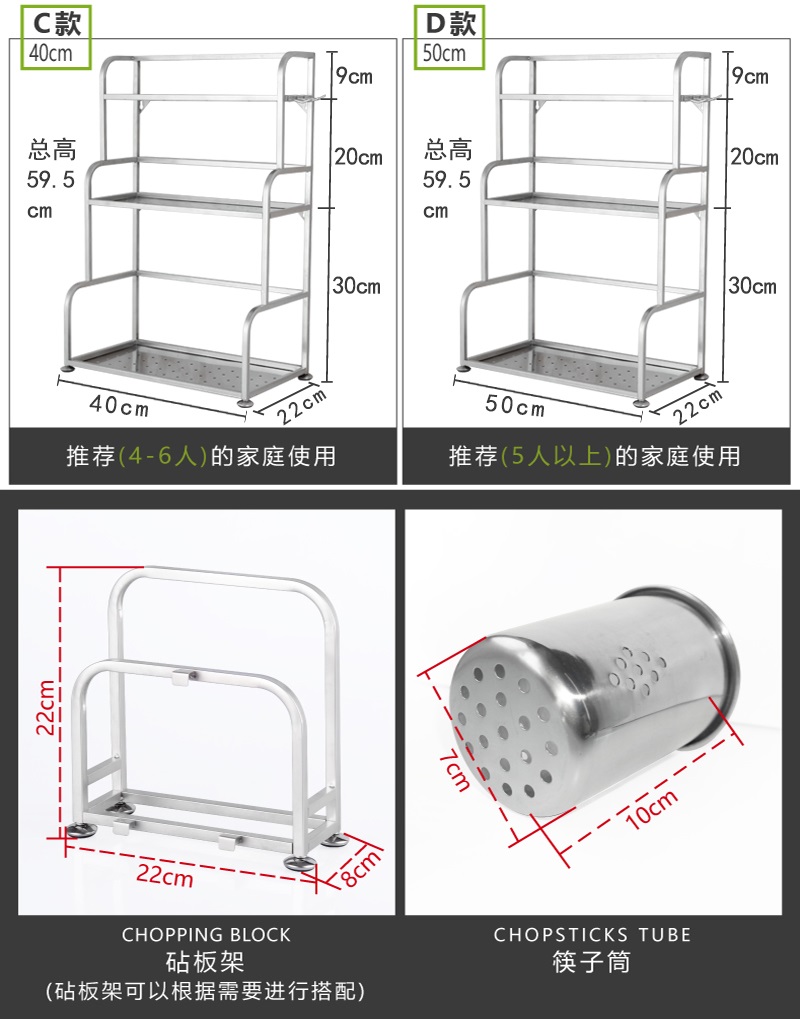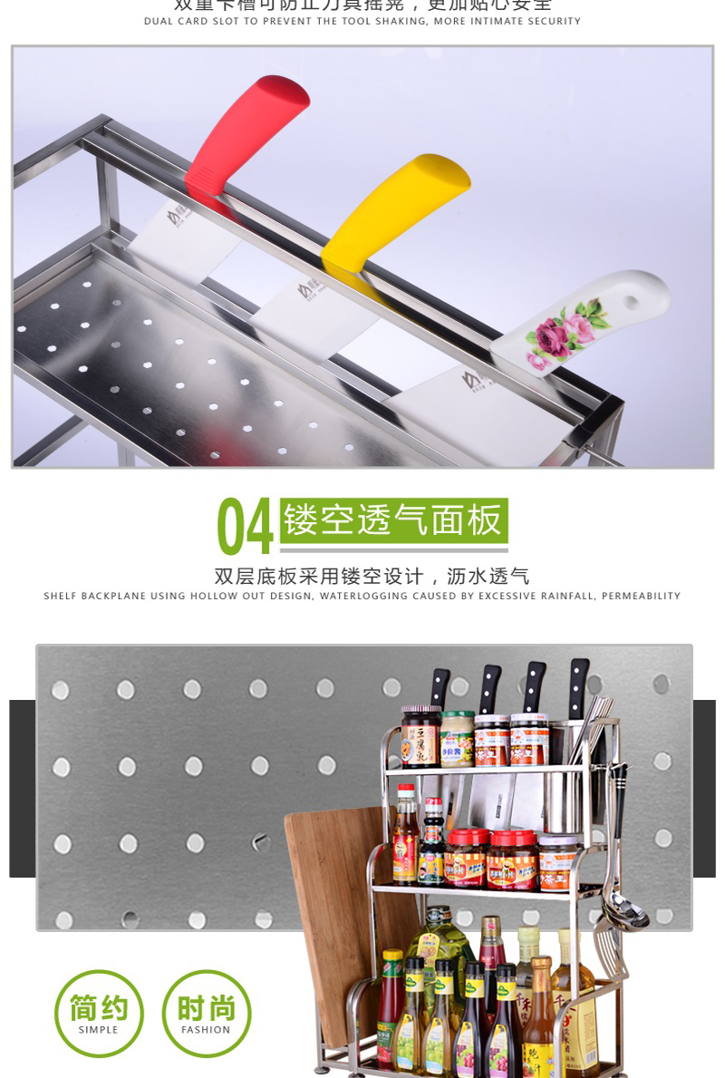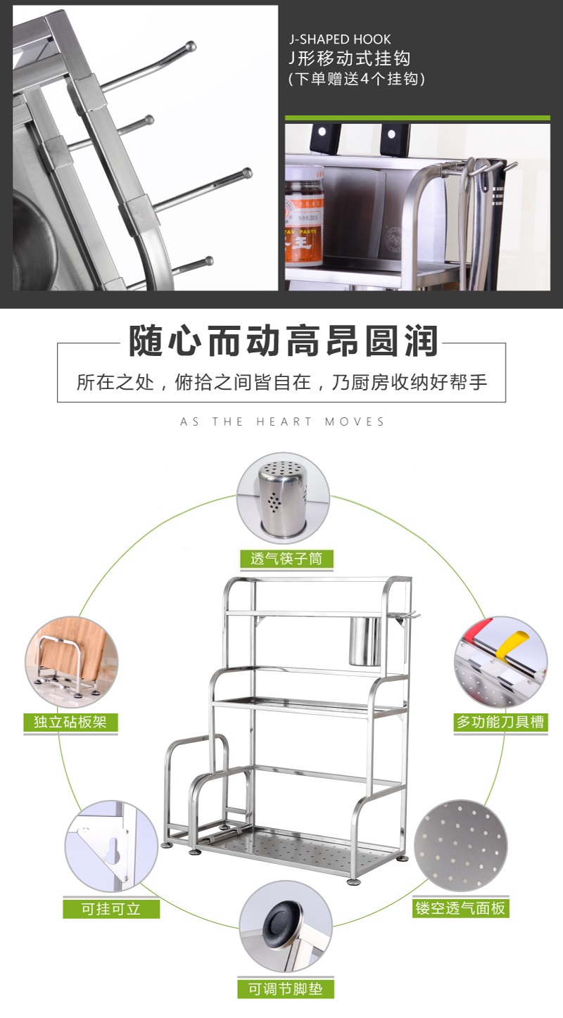 Product Name: Kitchen Storage Rack 304 Stainless Steel Layer Rack Floor Stand Knife Rack Seasoning Rack Three-layer Storage Wall-mounted Kitchen Supplies Thickened Model 30cm 40cm 50cm