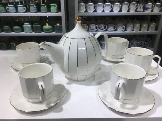 Six cups, Six plates and a pot of ceramic hotel supplies