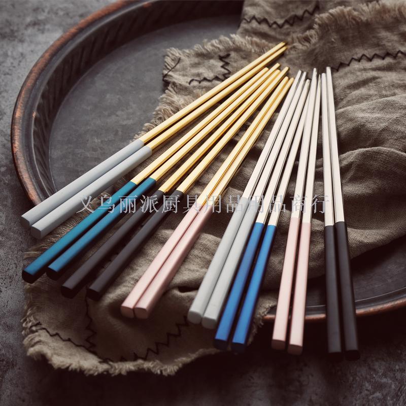 Food grade 304 stainless steel chopsticks Nordic square anti-skid anti-ironing high-end chopsticks household utensils 中文版