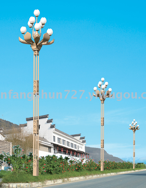 About Product:Product description: Magnolia lamp is a multi-light source huamel with Chinese characteristics and assembled lamp appearance. The structure of the main light source is magnolia blossoms, and the main light source is skillfully combined with petals. The top image quality is fragrant and full of posture. The light and color between the leaves set off, the colors interact with the lights and shadows, the integration of science and technology and humanity, and the integration of function and decoration. Beautiful, with high pressure. The main light source can change the form of double arms or single arms, and the content of the decorative area of main Rod luminous and base cultural elements can be customized. The use environment is mainly applicable to large cultural and leisure squares, main road intersections, parking lots, stadiums and other places that require large-area lighting.