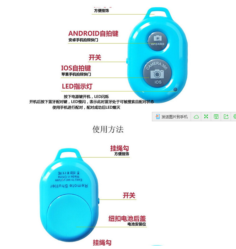 4: the iphone can take photos by pressing the shutter button of the remote control.