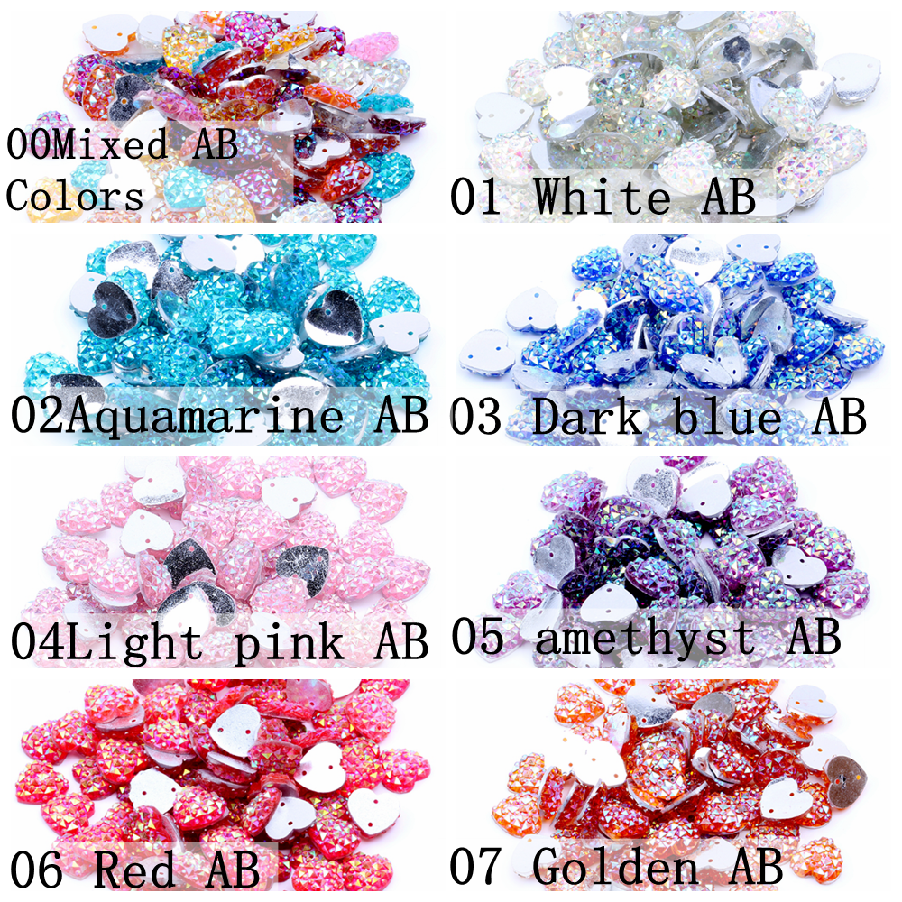 14mm 100/40pcs Heart Shape Sew On Rhinestones With Two Holes
