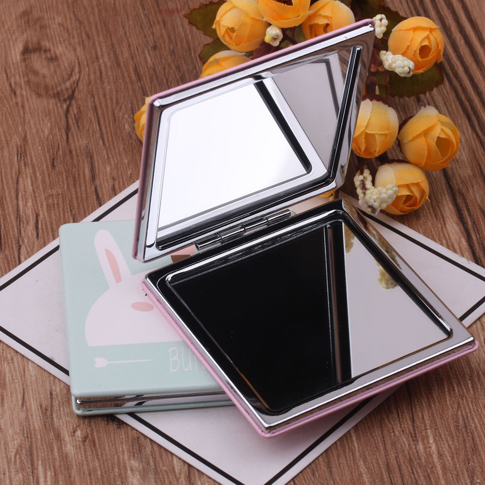 10 yuan store boutique portable portable double-sided small mirror rectangular pu leather metal magnifying folding cosmetic mirror 中文版