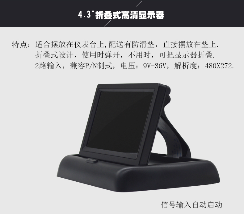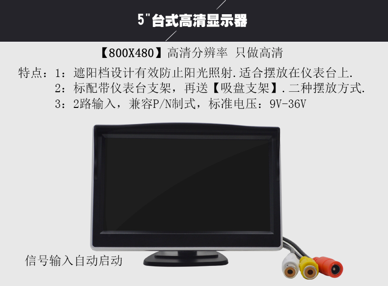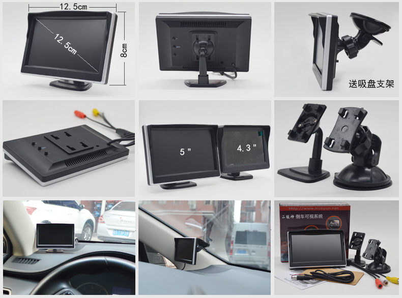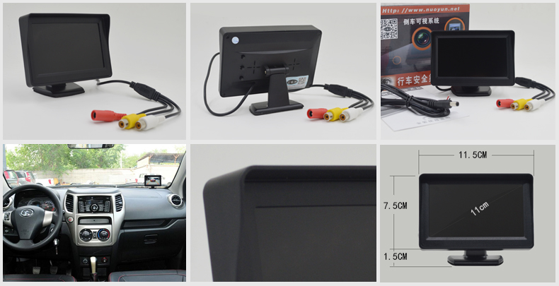 ● Dedicated to the car-mounted product industry, this product features a brand new A-grade LCD screen with clear picture quality and refined effects. It supports multiple languages and can flip images up/down/left/right. The display ratio can be switched between 16:9 and 4:3. It has two video input ports, allowing connection to DVD, VCD, set-top boxes, surveillance cameras, car-mounted DVD, and more video devices. Additionally, it has a reverse camera function.