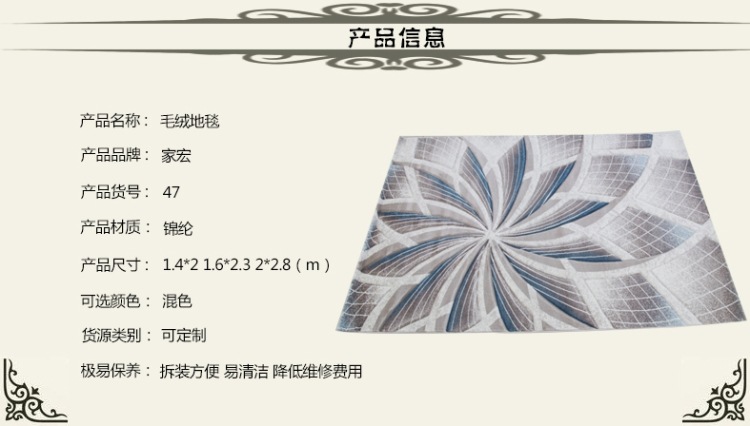 Luo jiahong sells carpets, floor MATS, bath MATS, floor coverings, floor coverings, floor coverings, floor coverings and floor coverings in a wholesale market. He has 10 years of foreign trade experience in yiwu market. The company enjoys a high status among consumers and has established long-term and stable cooperative relations with many retailers and agents. Luo jiaghong individual business distribution of carpet, floor MATS, bath mat, floor leather, floor leather, floor mat complete varieties, reasonable prices. Luo jiahong has a strong individual business strength, emphasizes credit, abides by contracts, guarantees product quality, and wins the trust of customers with the principle of operating in multiple varieties and making small profits and quick sales.