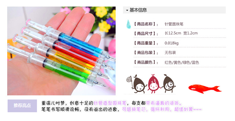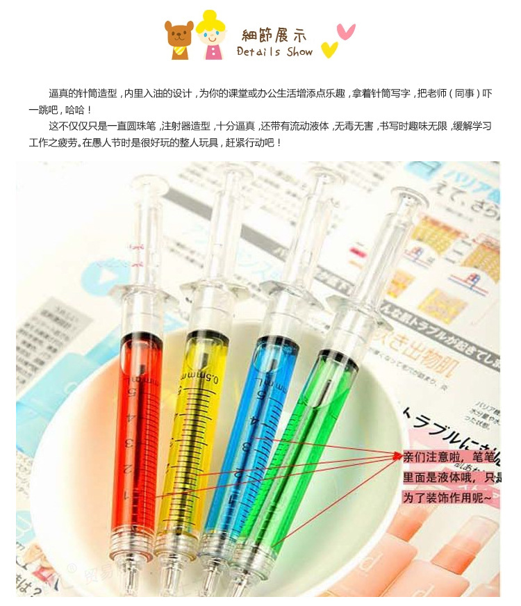Korean cute creative stationery syringe ad custom needle barrel ballpoint pen student office signature pen