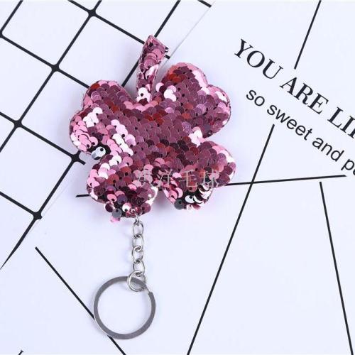 Manufacturers direct clothing accessories sequins key chain four leaf grass accessories