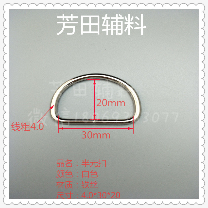 【Product Model】: 4.0*30*20 Semi-Circle Buckle 【Dimensions】: 4.0 (line thickness) * 30 (inner diameter) * 20 (inner height) 【Product Material】:Wire 【Product Color】: White is in stock. Other colors require custom-made. |
