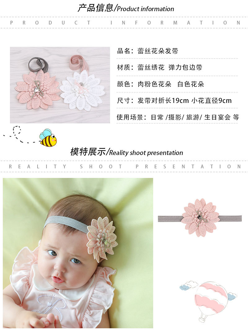 Foreign trade new baby elastic head band, white lace flower children hair band 中文版