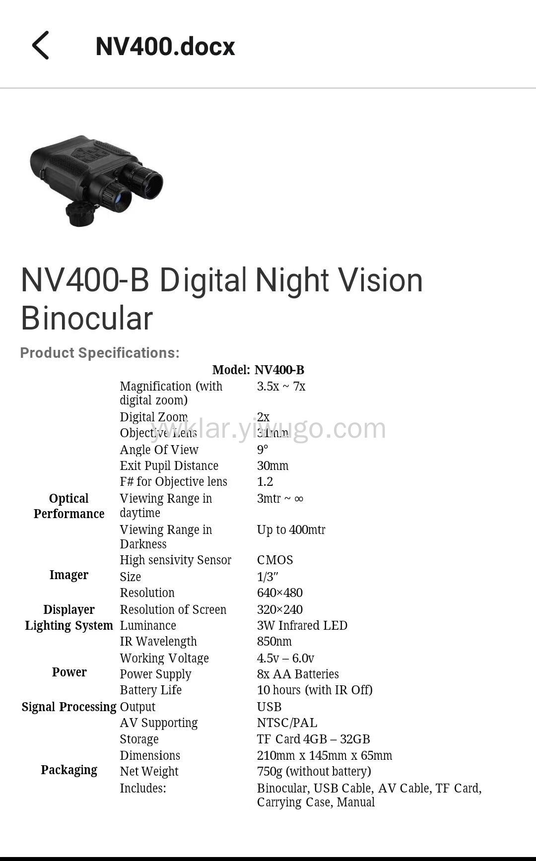7X31mm digital infrared night vision hunting binoculars/large screen, camera, and camera functions, capable of shooting infrared photos and videos day and night at a height of 400 meters/1300 feet