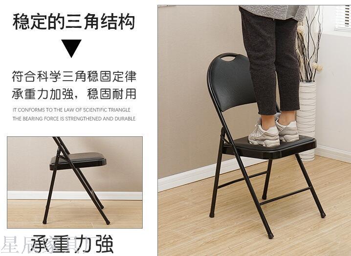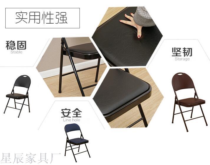 [Product Description] The seat surface of the folding chair is not made of ordinary density board, but is made by stamping iron plates and edge binding. The entire seat surface is a single iron plate, which is strong and durable. The seat surface is covered with soft cushions made of high-quality leather and high-density sponge, suitable for family, office, training, meetings, exhibitions, concerts and other venues. It is also a choice for schools, enterprises and institutions, and large sellers on Taobao.