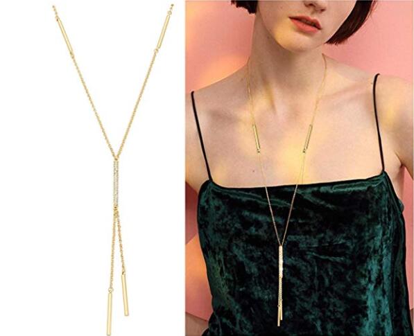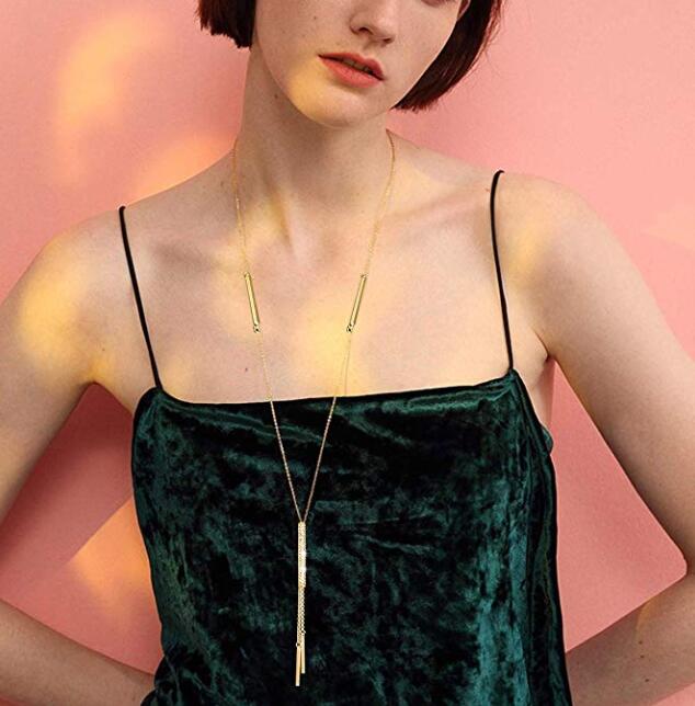INFANTA JEWELRY Women Long Necklace Minimalist Bar Pendant Necklace for Women Girls Delicate Y Shape Lariat Necklace