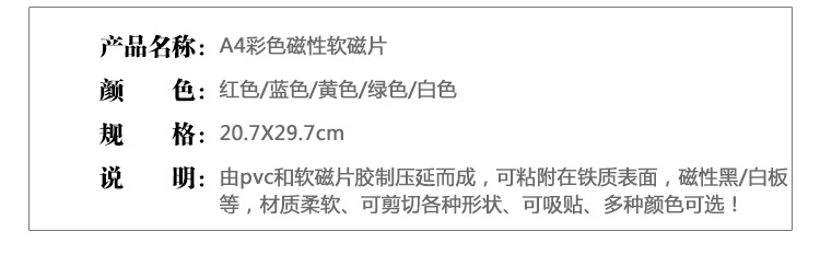 A4-sized colored soft magnetic sheet whiteboard magnetic stickers office teaching magnetic paper blackboard strong magnet adhesive can be cut magnetic stickersUpdate time: