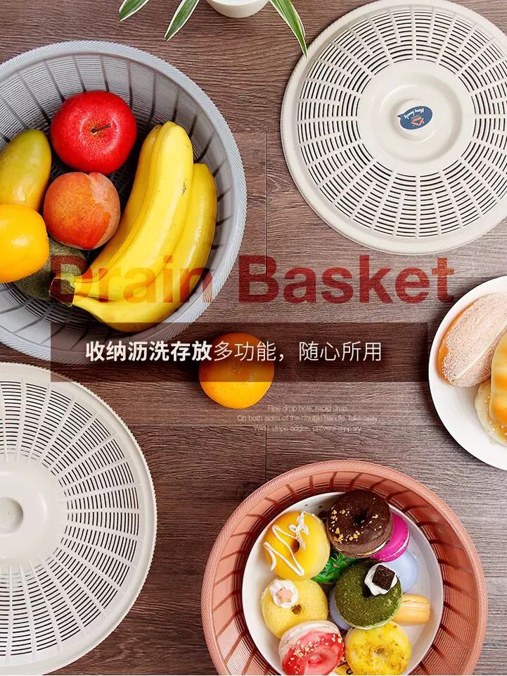 kitchen tableware storage basket plastic basket with lid fruit vegetable basket storage basket draining sieve basket 中文版