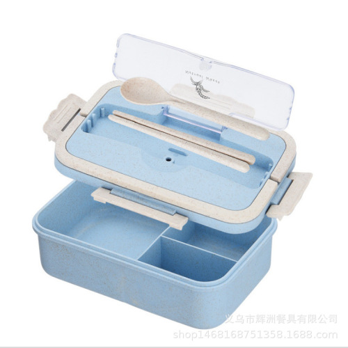 hz289 wheat straw bento box compartment student with cover microwave oven office worker canteen simple crisper